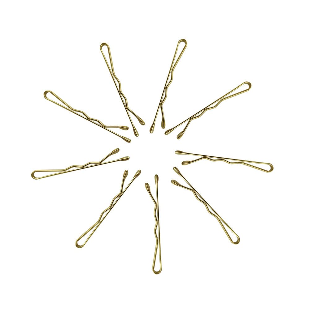 Premium set of 220 gold bobby pins featuring a secure wave design and protective tips, perfect for all hair types and occasions.
