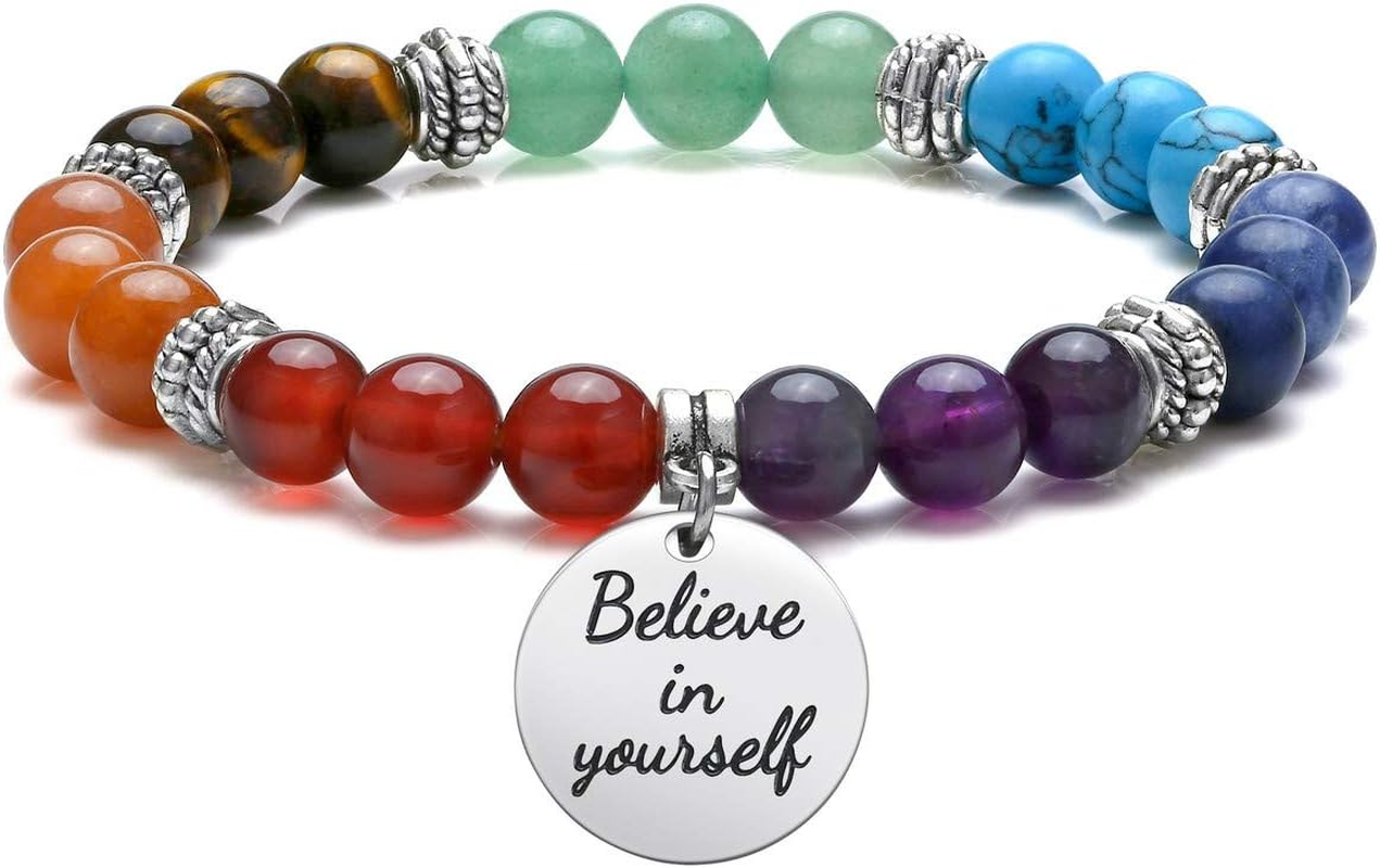 A warm 7 chakra stone bead bracelet made from 100% natural crystals, designed to provide calming energy and relaxation. This stretch bracelet with a 7-inch perimeter offers comfort and spiritual balance for both women and men.