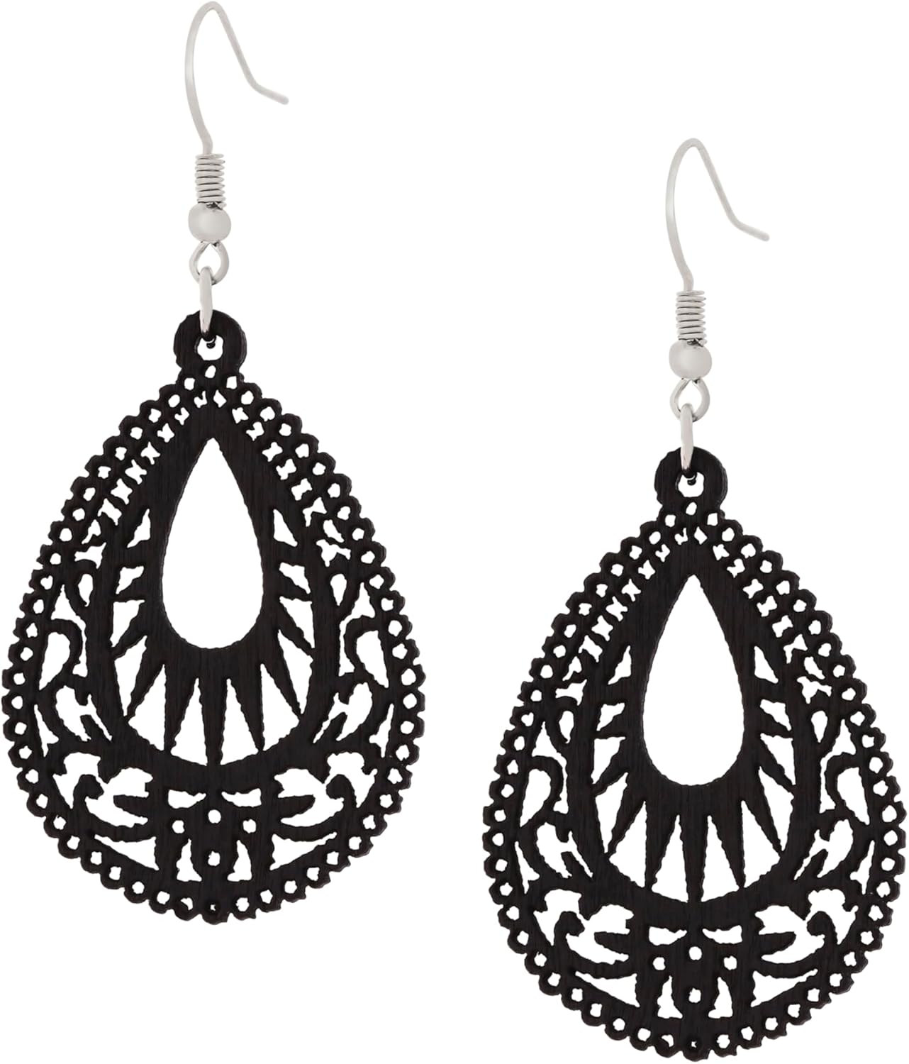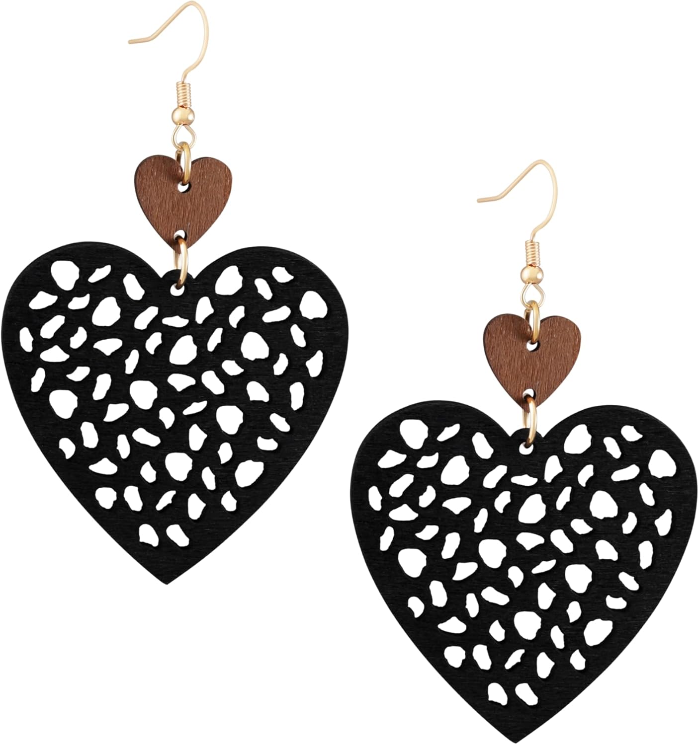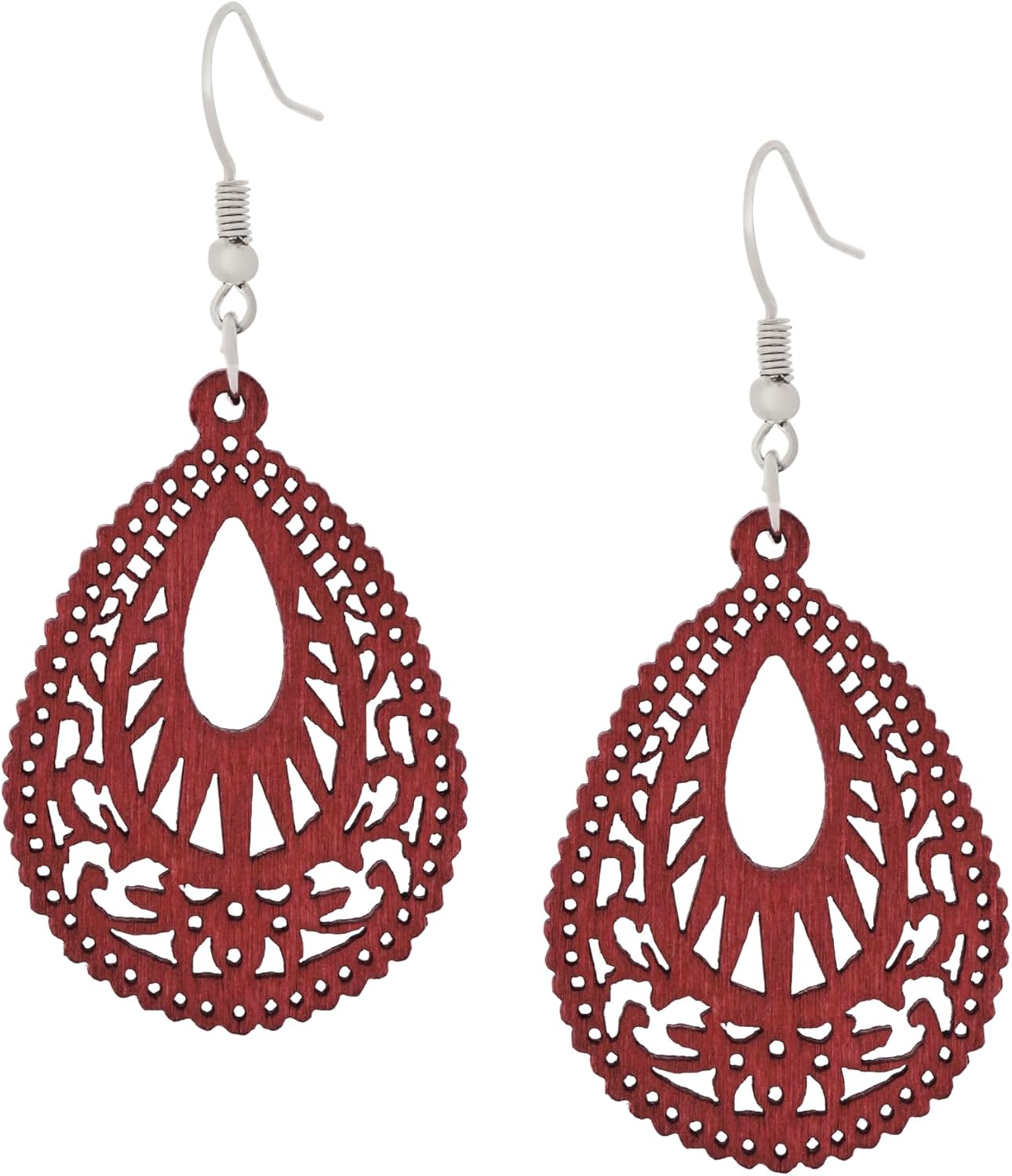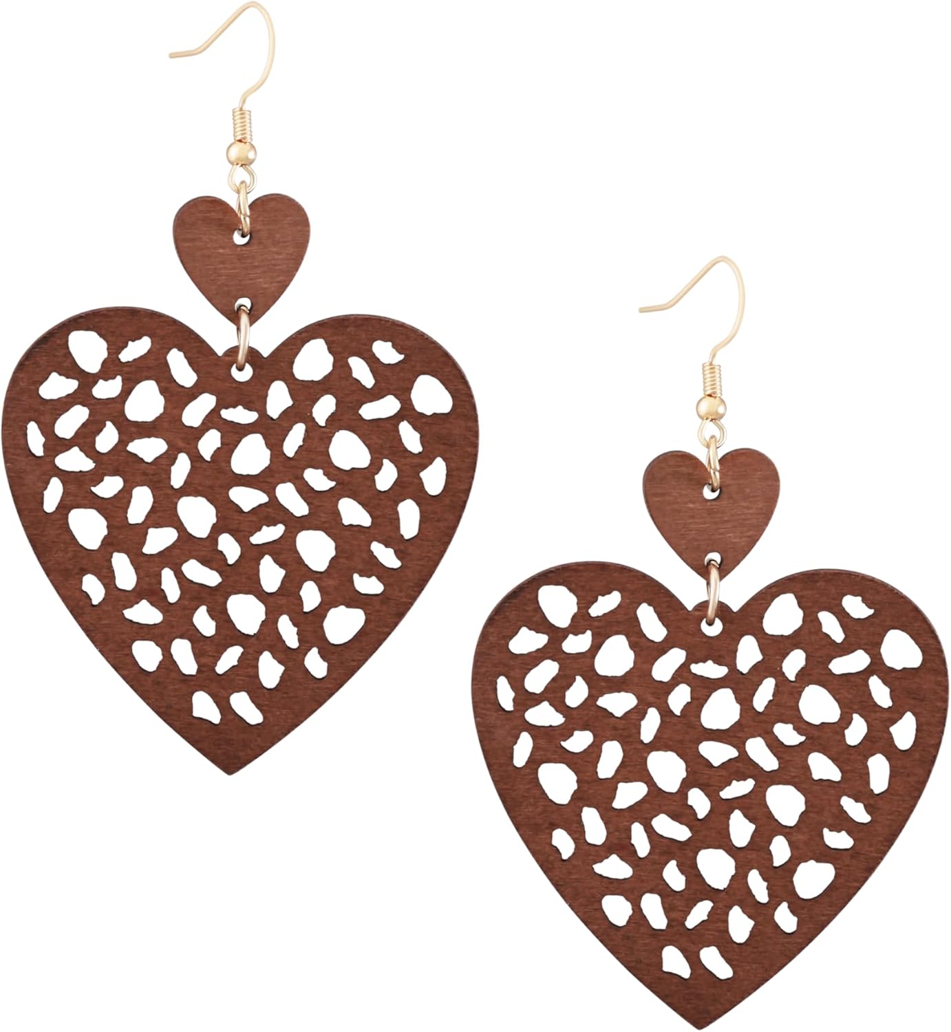 Bohemian hollow cut-out dangle earrings crafted from sustainably sourced wood and leather. These featherlight earrings feature intricate artistry with a subtle boho flair, offering a versatile and eco-friendly fashion statement for any event.
