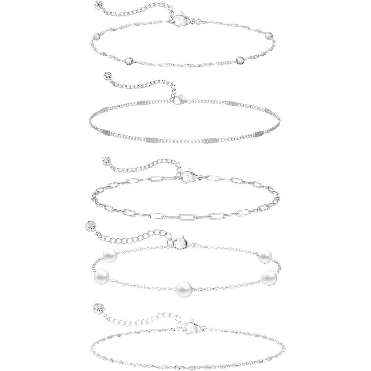 - Design: Dainty beaded and paperclip chain designs