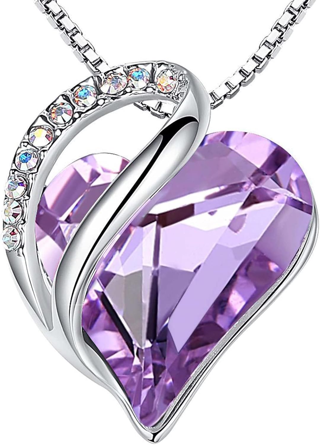 An Infinity Love heart necklace featuring a precious Austrian birthstone crystal in a delicate rhodium-plated setting. This personalized jewelry gift comes with an elegant presentation box and meets strict European safety standards, making it perfect for honoring special women in your life.