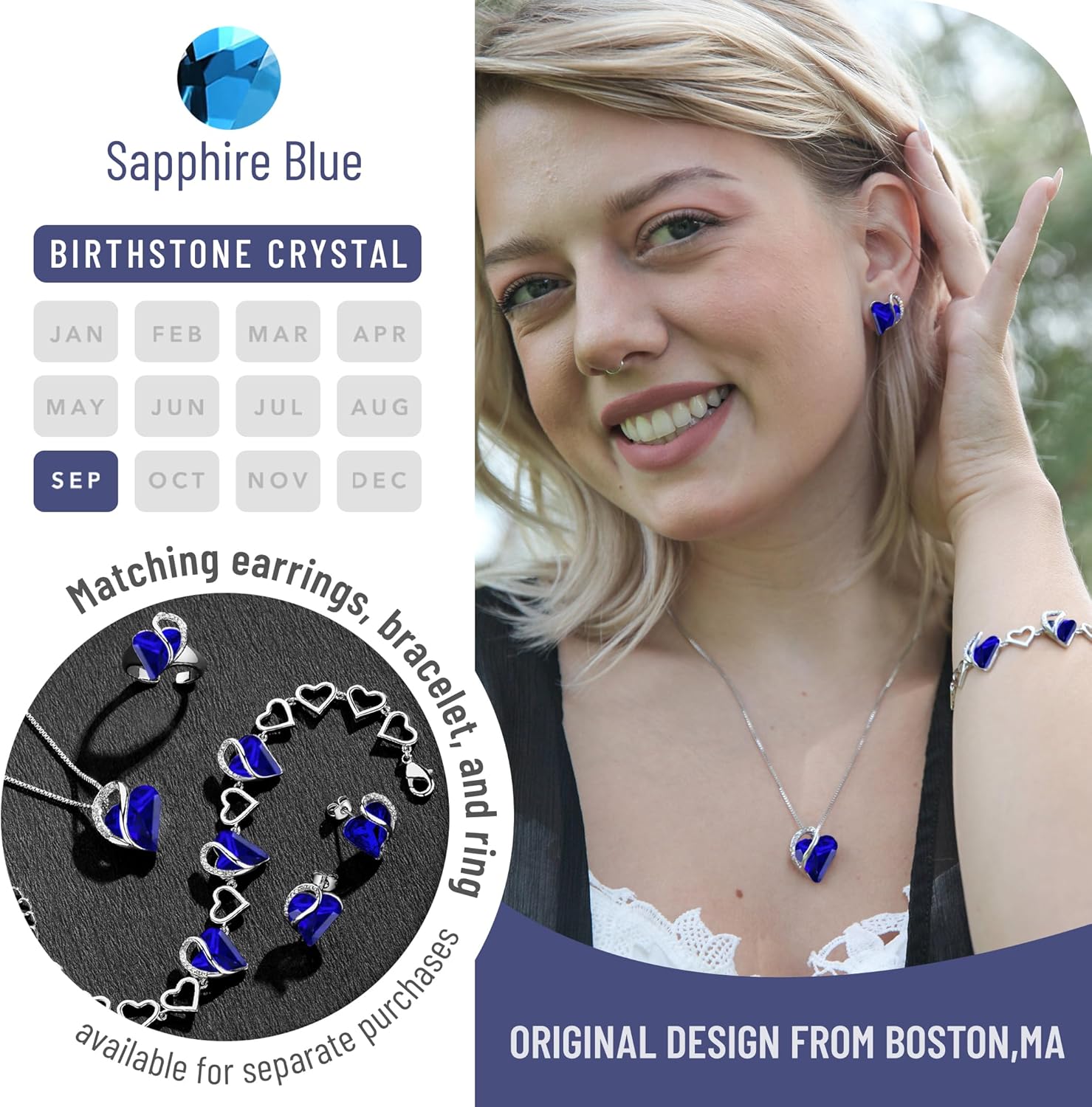 Design: Infinity Love heart with Austrian birthstone crystal