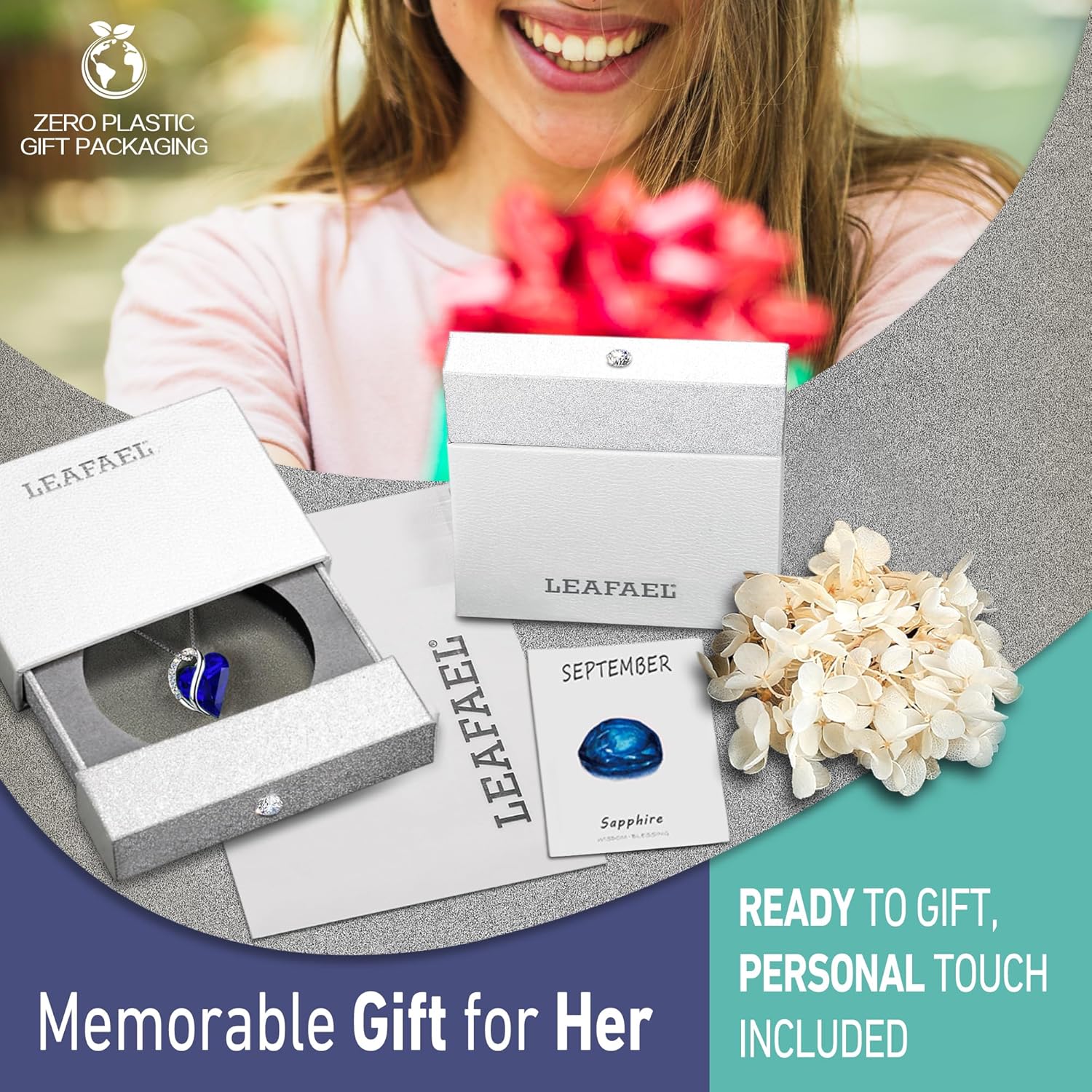 Packaging: Elegant silver-embossed jewelry box