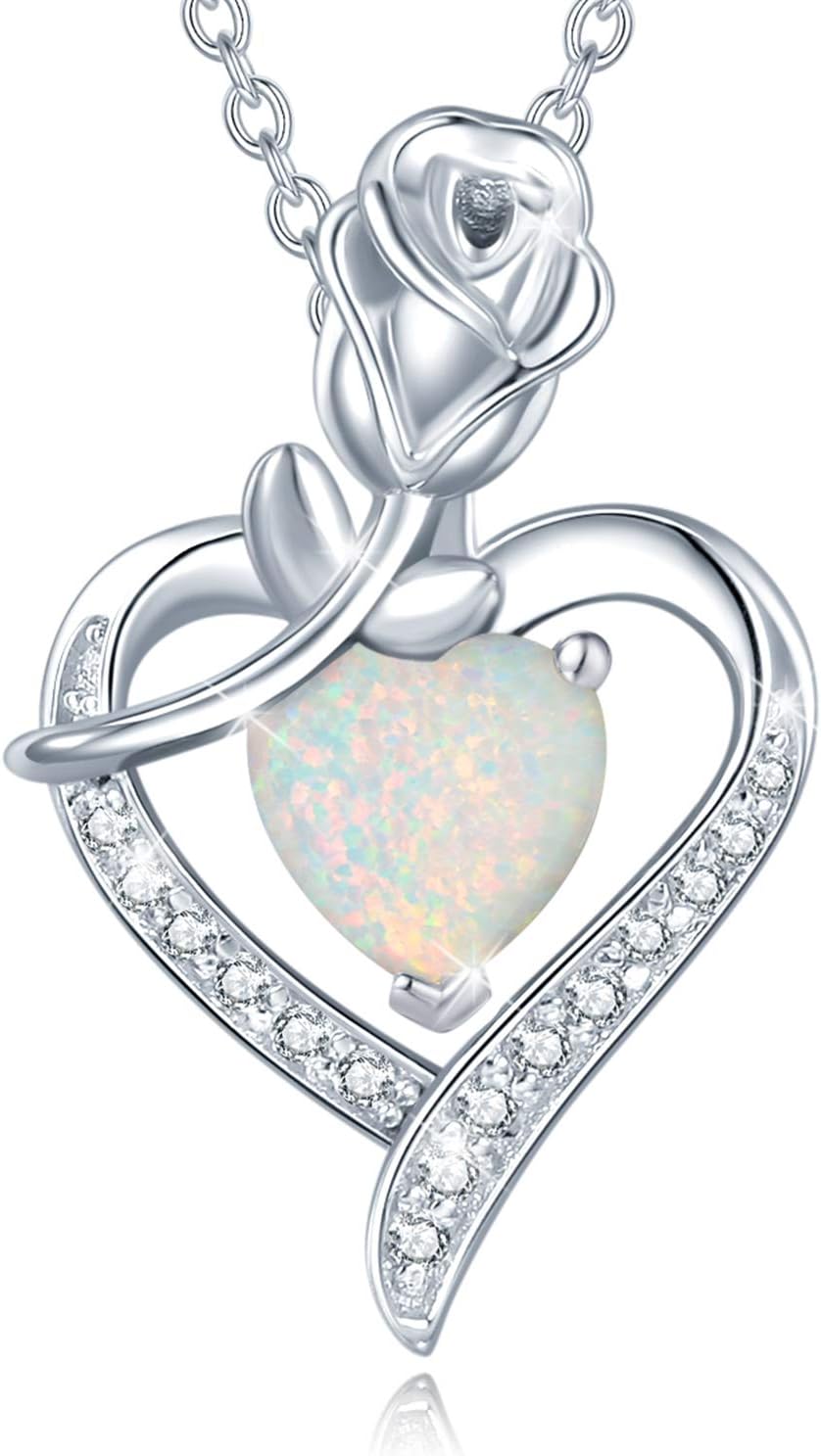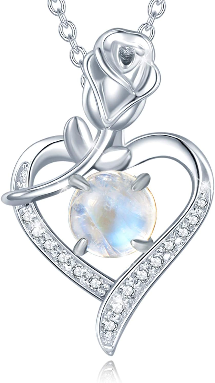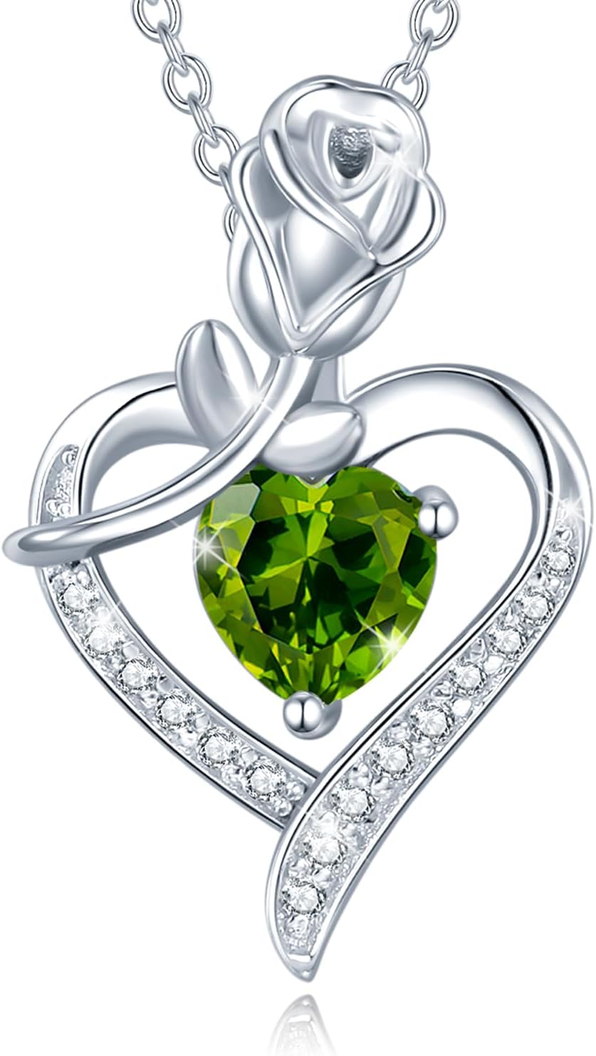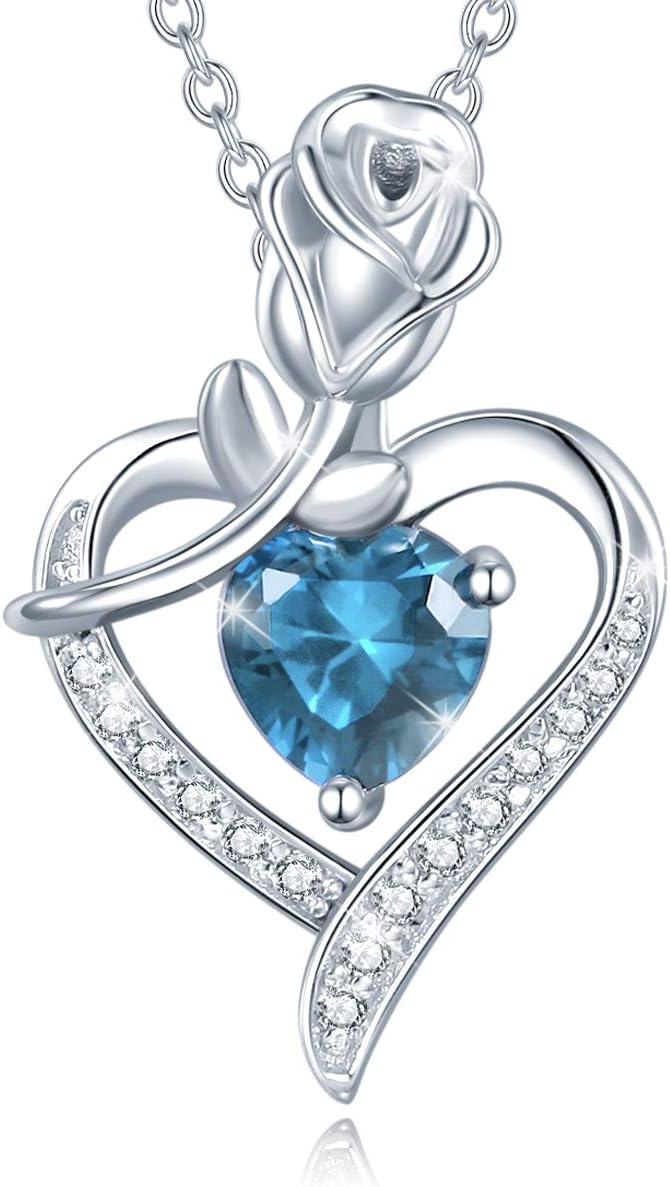A romantic rose flower heart pendant necklace crafted from 925 sterling silver with customizable birthstone selections. This elegant piece embodies romantic elegance with a dream-like design, perfect for women who cherish meaningful jewelry gifts.